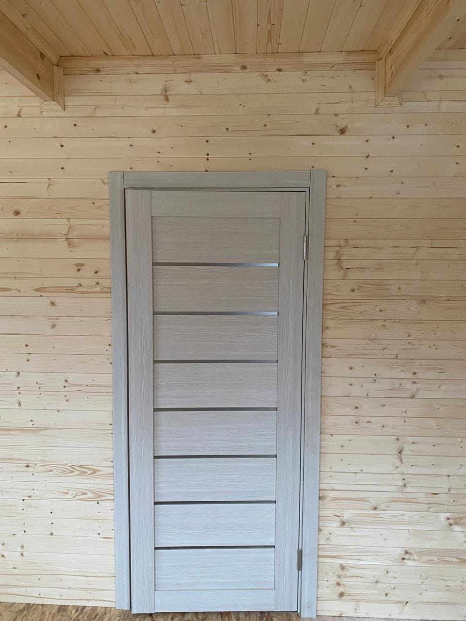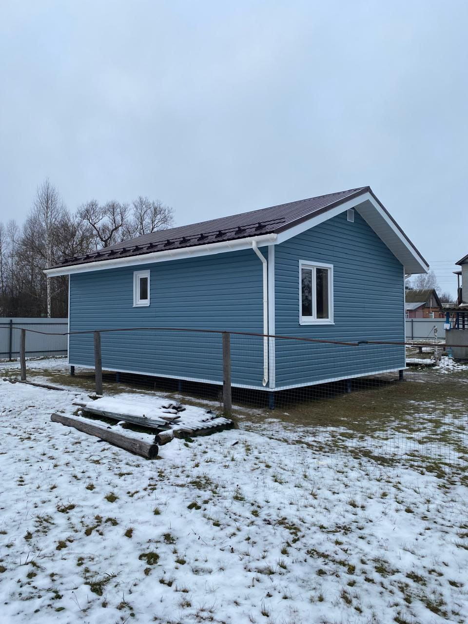 Дом выглядит аккуратно и современно в загородном ландшафте, его размеры 6х8 м. Все элементы архитектуры расположены симметрично, окна ПВХ большие (с поворотно-откидным механизмом, стеклопакет однокамерный), входная металлическая дверь утепленная (производства Россия) защищена широким навесом. Рядом с входом находится открытая терраса, которую, при желании, можно застеклить. Для внешней отделки фасадов мы использовали сайдинг "Альта Профиль КЛАССИКА", для внутренней облицовки стен - стандартную вагону камерной сушки "Штиль" сорт АБ (без покраски 12 мм). Напольное покрытие - плиты ОСП 22 мм. Межкомнатные двери стандартные - Экошпон (Россия). Кровля дома стандартная - цветной профилированный лист С20.