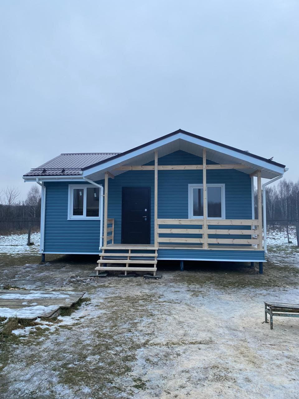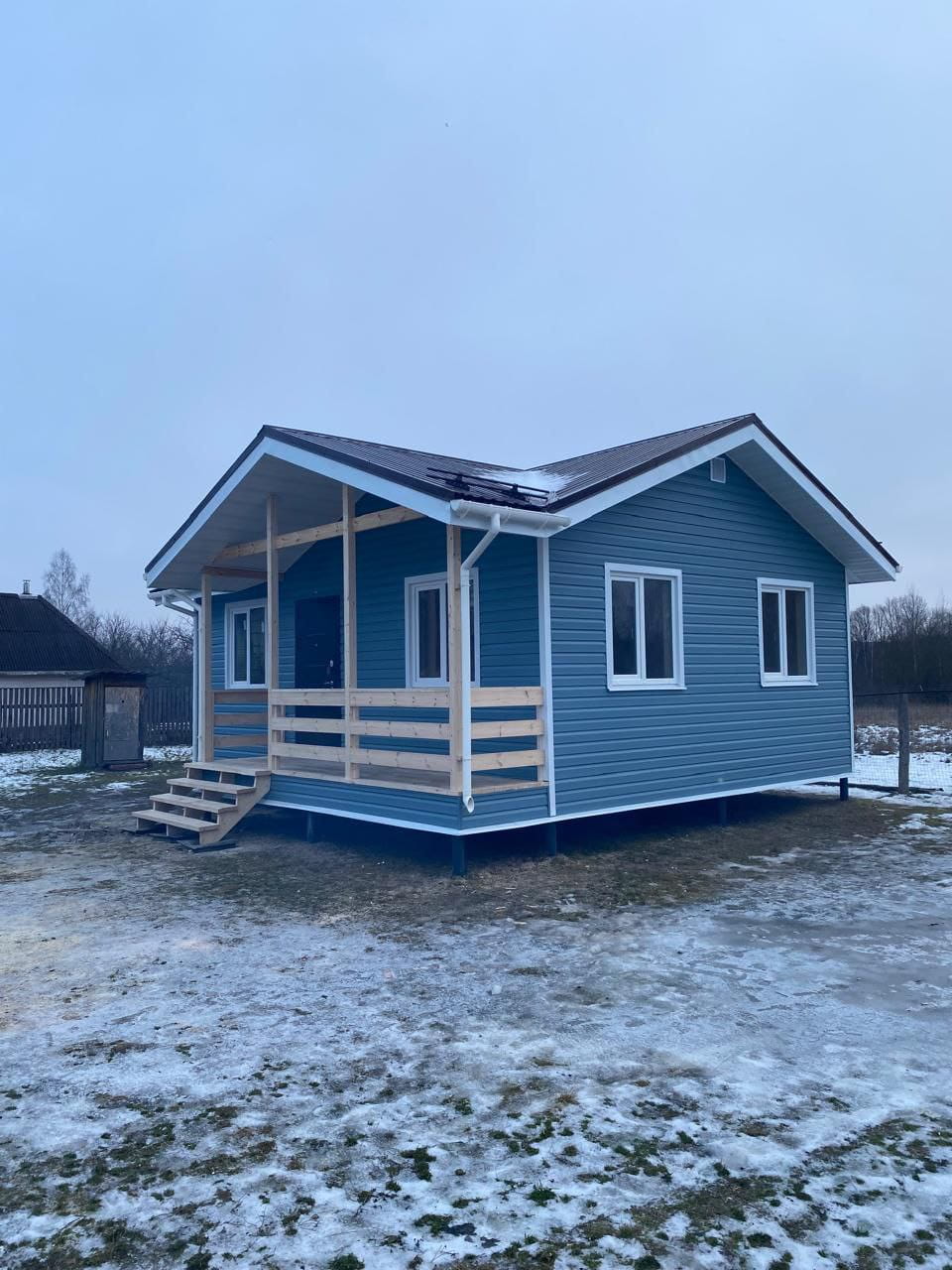 В декабре 2025 наша компания закончила строительство каркасного дома "Охотник" в деревне Хмелевое (Кораблинский район, Рязанская область). Это компактное, современное одноэтажное строение (площадь застройки составила 51,92 м2), на возведение которого (вместе с фундаментными работами) ушло чуть более 30 дней. Мы начали строительство летнего домика 18.11.2025 года, и уже 20.12.2025 года владельцы недвижимости получили ключи. Дом по каркасной технологии пригоден как для сезонного использования, так и для постоянного проживания небольшой семьи.